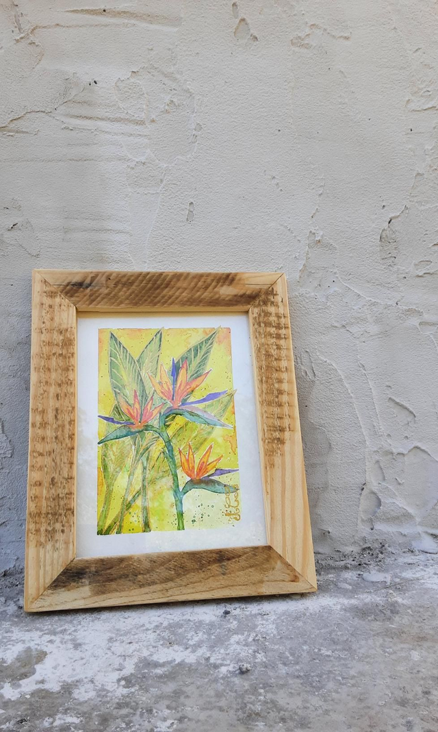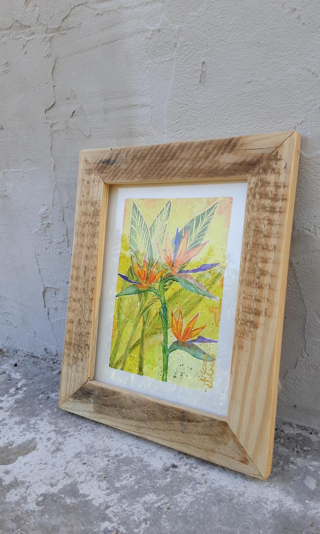 Illustration Original à l'aquarelle, fleurs tropicale Oiseaux de Paradis